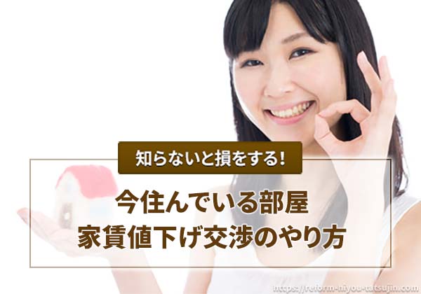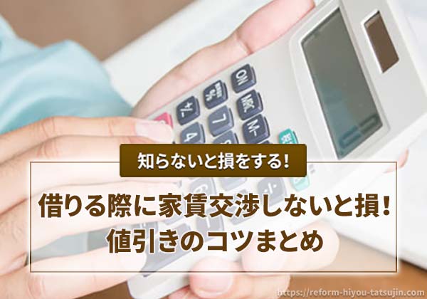 家賃が安くなることで、毎月の支払額が減るだけでなく、敷金、礼金、仲介料など、すべての費用の値下げにつながります。値切るなんて恥ずかしいと思わずに、どんどん交渉していきましょう。